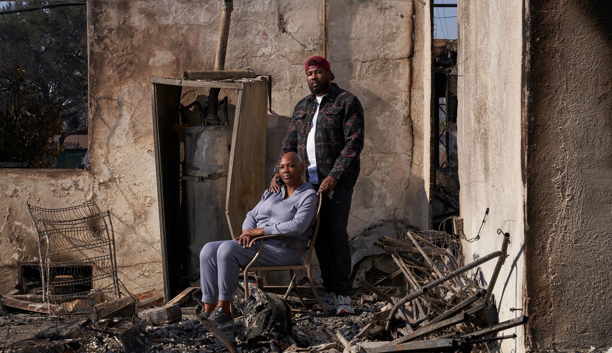 Antes de que el fuego arrasara la casa el 8 de enero, Threadgill ya había llevado a la mujer a un centro de evacuación para su seguridad. Pero la casa se quemó hasta los cimientos, llevándose consigo un montón de recuerdos: fotos de boda, fotos de su hijo, artículos de colección y objetos que le recordaban a su madre.
