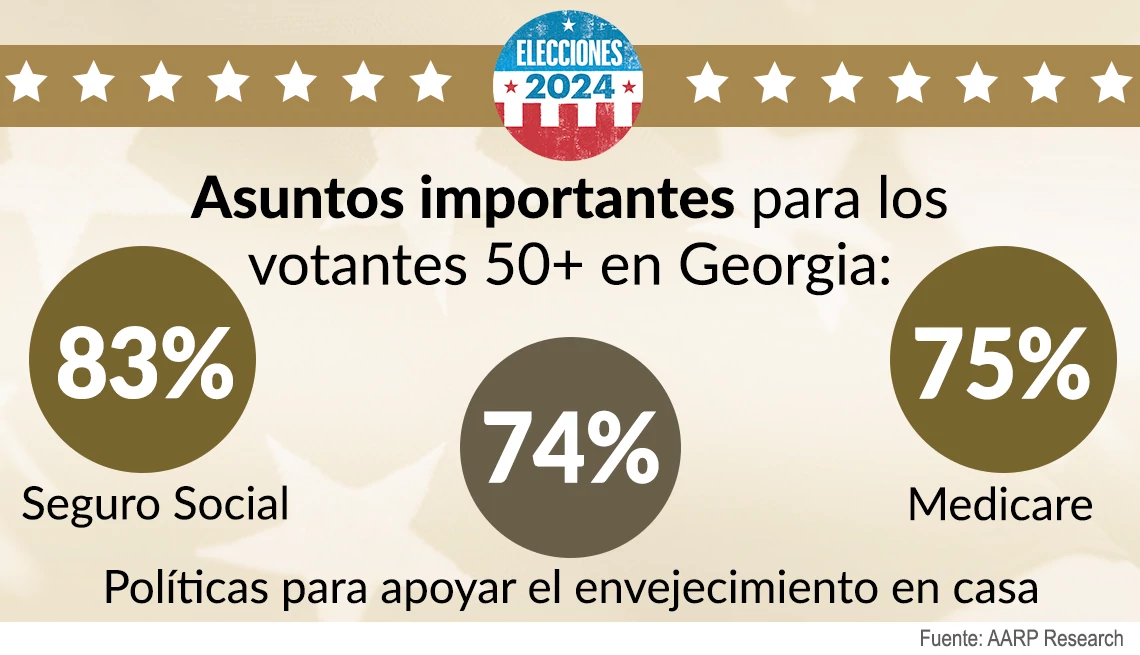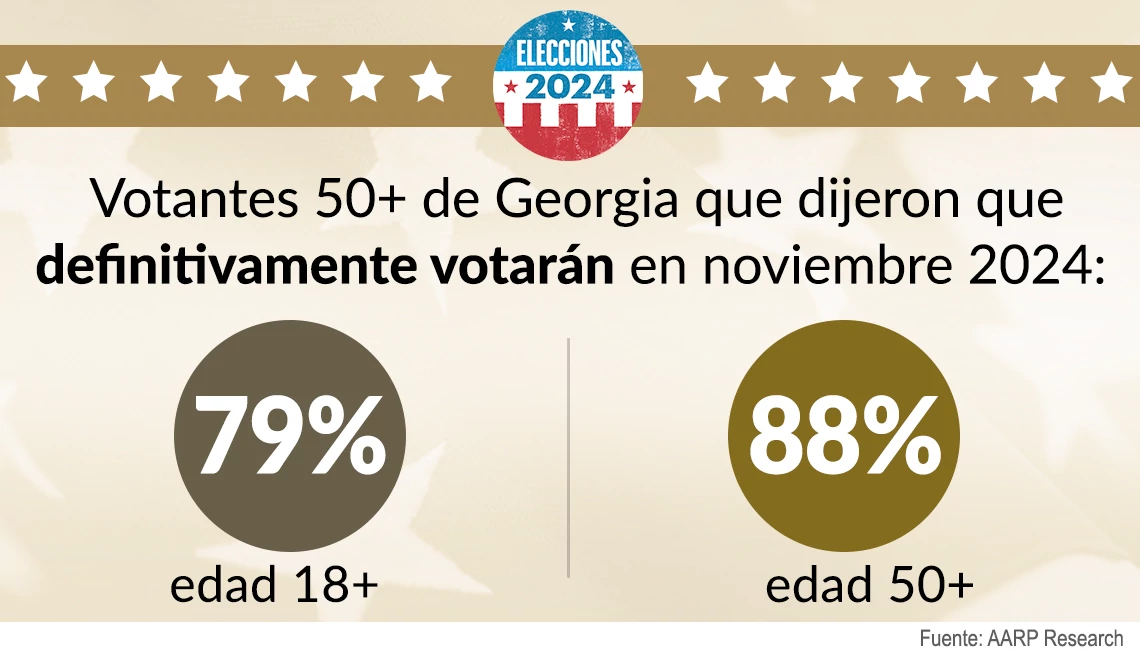 "Los votantes de Georgia mayores de 50 años son el bloque de votantes más grande y podrían inclinar la balanza a favor de cualquier candidato en estas elecciones", dice Vanessa J. Payne, directora estatal de AARP Georgia. "Con la carrera tan reñida, los candidatos harían bien en centrarse en los temas que importan a los votantes mayores, como proteger el Seguro Social y apoyar a los cuidadores familiares".