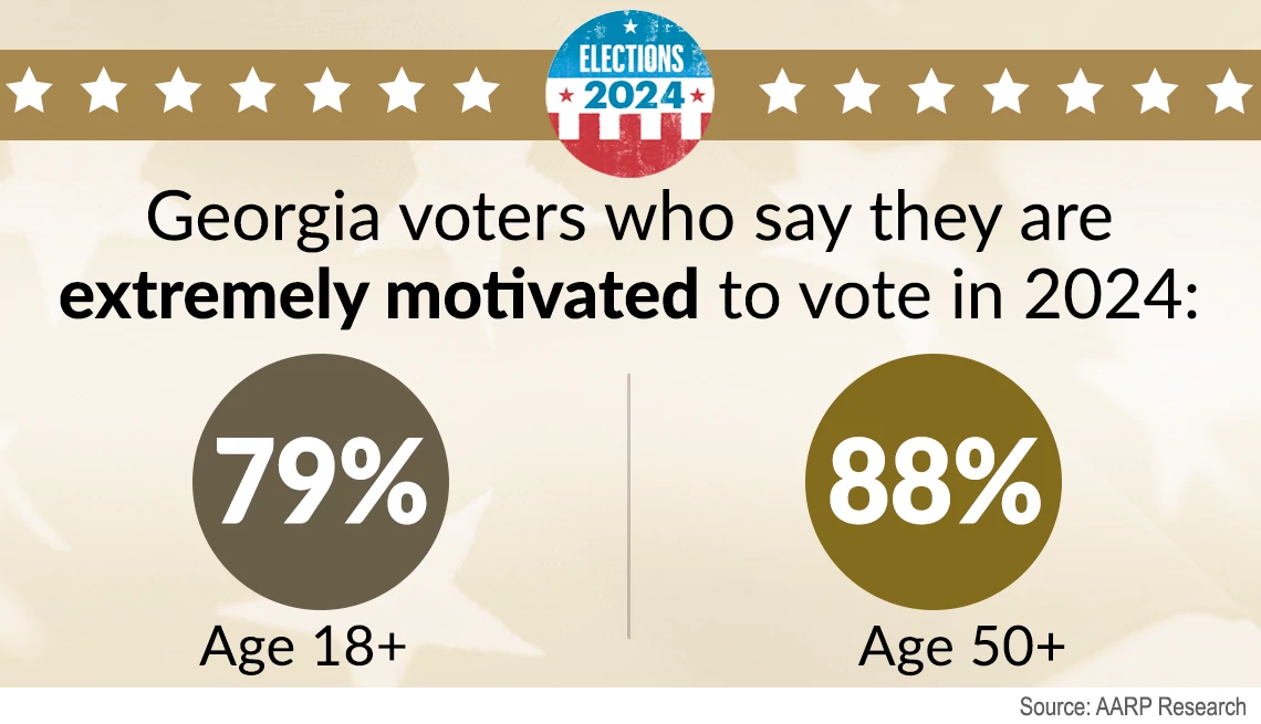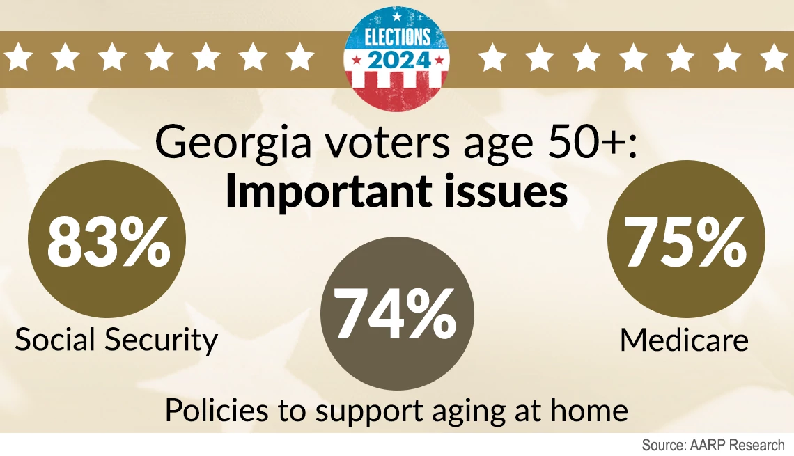 “Georgia voters ages 50 and older are the biggest voting bloc and could tip the scale for any candidate in this election,” says Vanessa J. Payne, state director of AARP Georgia. “With the race so close, candidates would do well to focus on the issues that matter to older voters, such as protecting Social Security and supporting family caregivers.”