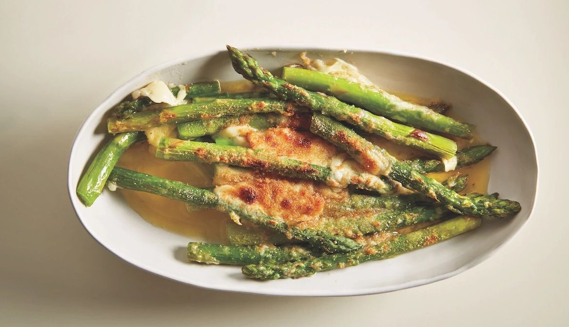 I’d love to suggest that you serve the pork with a simple and elegant asparagus gratin. Cover cooked asparagus with cheese, stick it under the broiler until the top is golden brown and crisp around the edges, and you have a fabulous side. Don’t like, or have, asparagus? Sub in green beans, fennel, leeks or spinach. It’s such a quick preparation that it’ll be no problem to serve it piping hot.