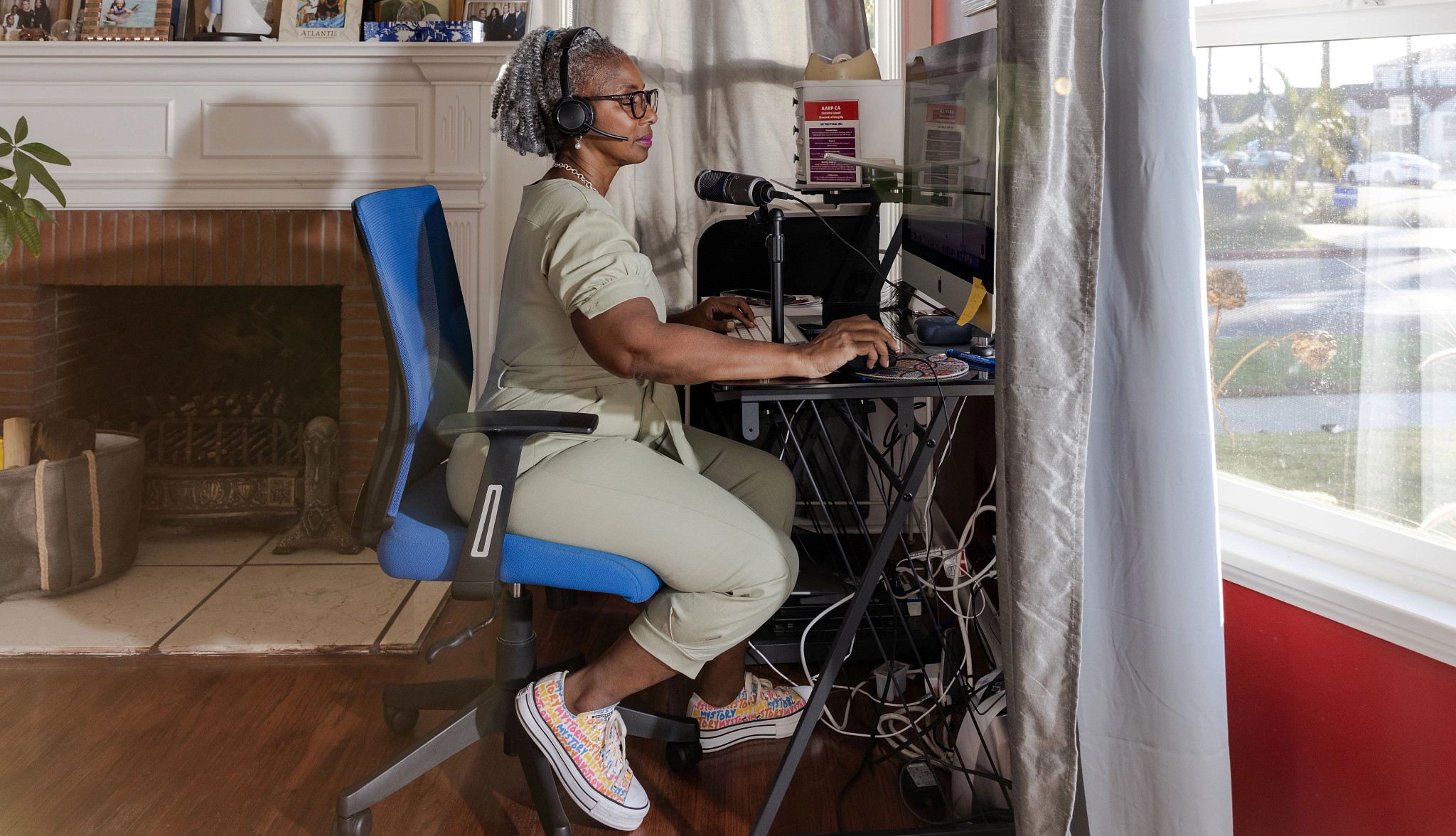 She helped AARP California plan the podcast but didn’t expect to host until she was asked. “They said, ‘We’re sending you a professional mic in the mail and we’ll send you the script,’ ” she says. “We have amazing production workers, they talk me through it — plugging in the mic, setting volume.”