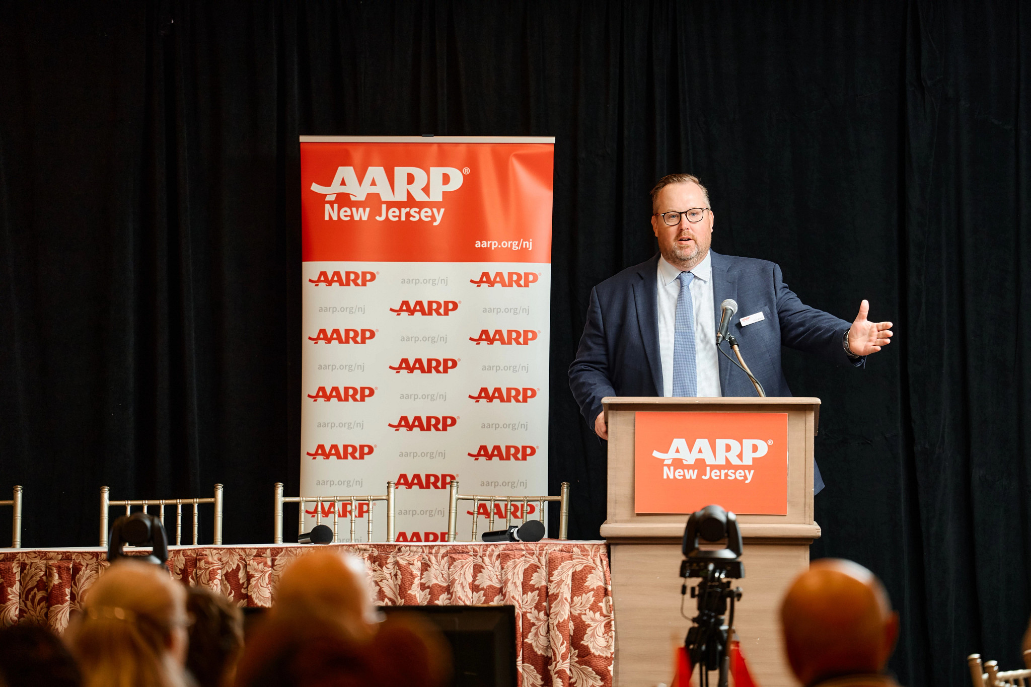 Next up was Chris Widelo, AARP New Jersey’s State Director, who welcomed more than 300 attendees both in-person and online. Chris emphasized AARP’s commitment to fighting fraud through partnerships, community events, and educational outreach. He gave a special shoutout to the Speakers Bureau volunteers, whose efforts bring fraud prevention presentations to neighborhoods across the state. His message? Knowledge is power and by being here, you’re taking a big step toward protecting yourself and others.
