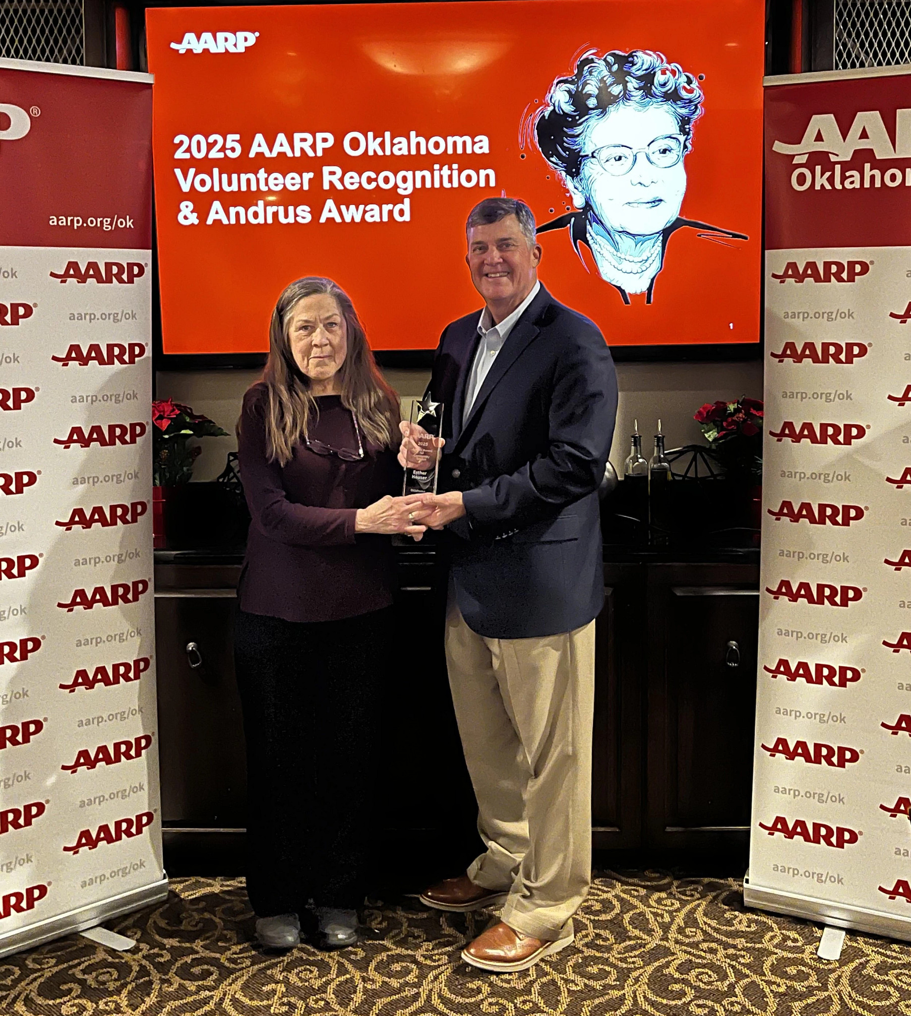 This award honors a volunteer who has served with AARP Oklahoma for at least five years and has propelled the success of AARP Oklahoma’s strategic direction and mission.