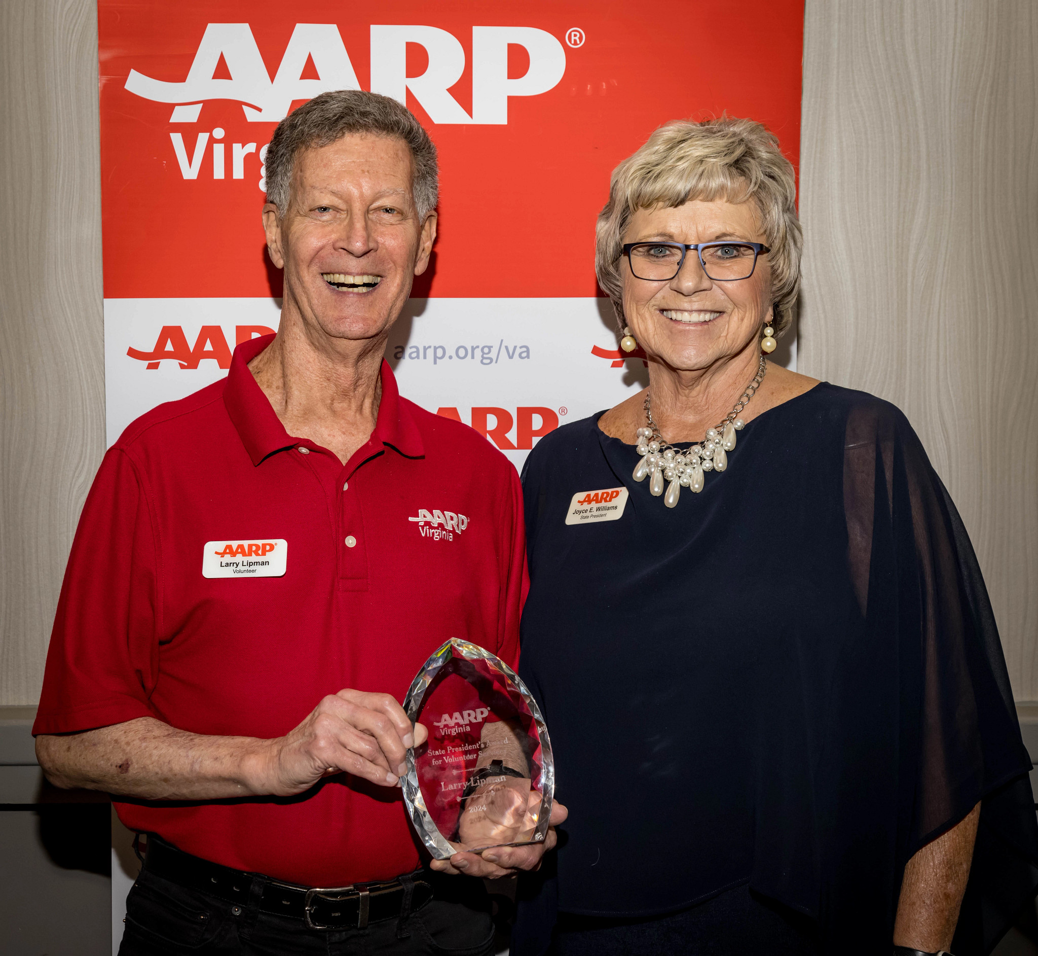 “On a personal note, I hold Larry in high regard for his remarkable ability to enhance my writing, transforming it into a polished piece,” AARP Virginia State President Joyce Williams said while presenting Lipman the Award on April 26, 2024. “For his invaluable contributions to the whole team and to telling the AARP story, I extend my heartfelt gratitude. Therefore, it is with great pleasure that I present Larry with the President's Award in recognition of his unwavering dedication and exceptional service to us all.”